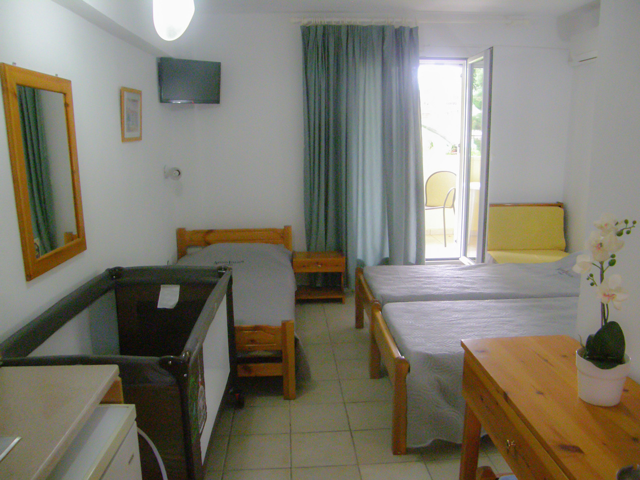 In Siviri, in Chalkidiki, you can easily find Neilis Apartments. Just 250m. from the sea Neilis Apartments are surrounded by lush vegetation (plants, lawn and many trees). On the back of the accommodation under the shadow of the walnut you can enjoy your grilled barbecue.